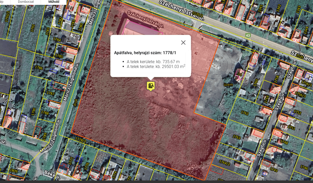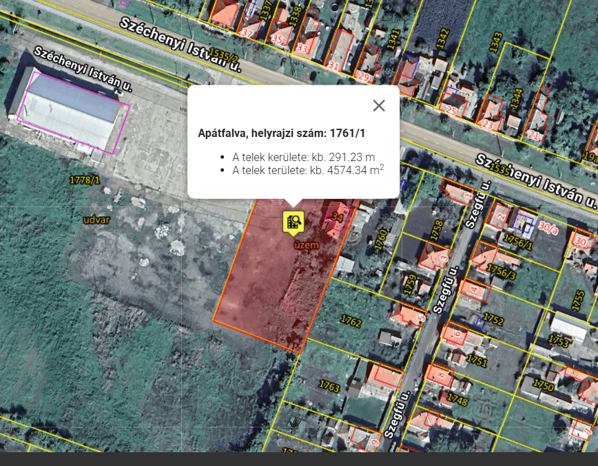 Eladó 34.000 négyzetméter területű ingatlan Apátfalva község belterületén 1.248 négyzetméter jó állapotú épülettel ( alsó szint 1.000 nm2, felső 248 nm2). közvetlen a 43-as főközlekedési út mellet a Széchenyi István utcában. Megközelítése nehéztehergépjárművekkel is kimondottan ideális. Az autópálya néhány percen belül elérhető.