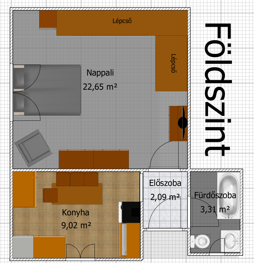 - 2 szoba (nappali, tetőtéri szoba)